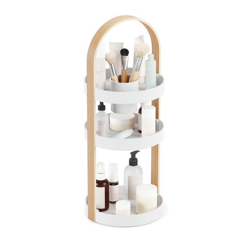 ABS cosmetic organizer in white and natural, Ø 20 x 50 cm | Bellwood