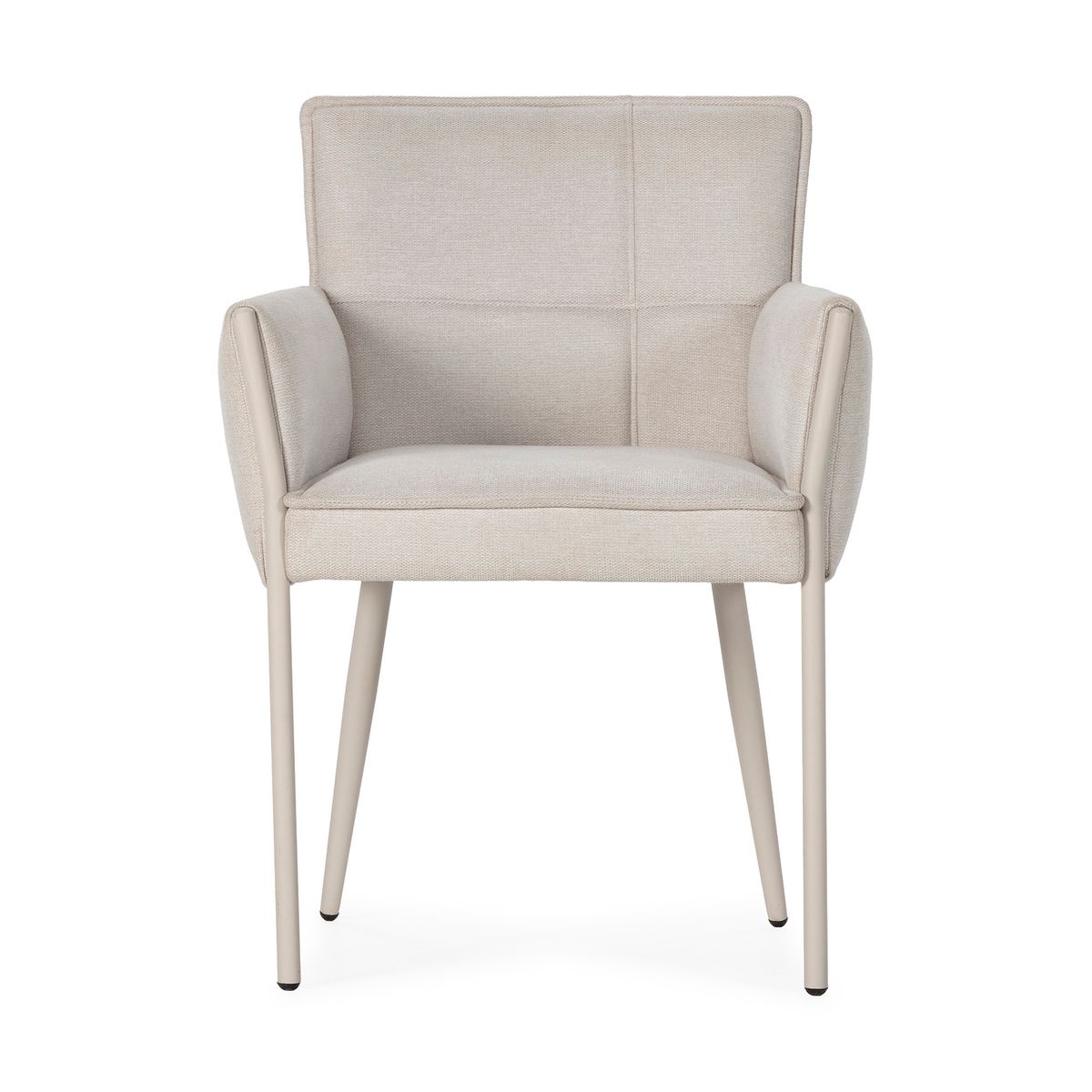 Beige fabric and metal armchair, 62 x 59 x 85 cm | Vesta