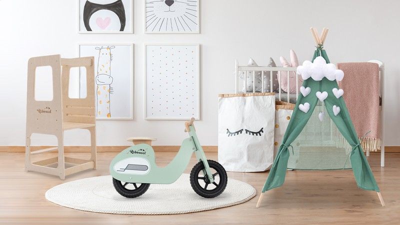 Finally, the Montessori-style ride-on bikes made of plywood and polyurethane leather saddle offer the boy and girl the freedom to explore their surroundings.