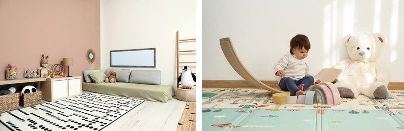 Depending on age, various types of gyms inspired by the Montessori method are available. Thus, you can find the baby gym made of natural pine, which incorporates four hanging toys.