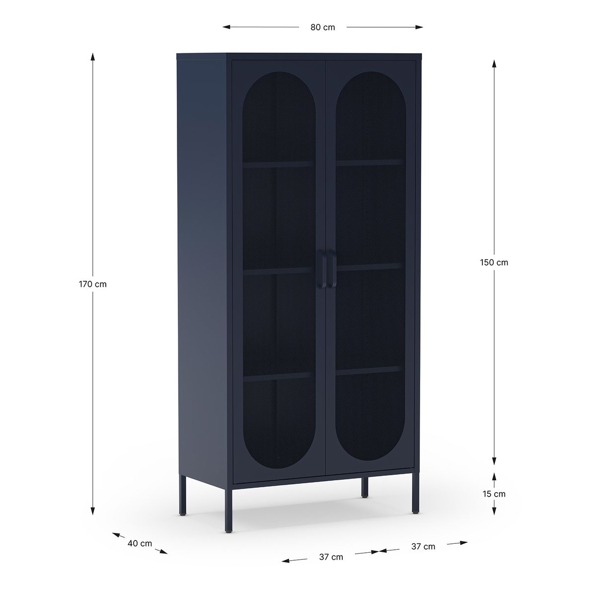 Metal display case in blue, 80 x 40 x 170 cm | Diora