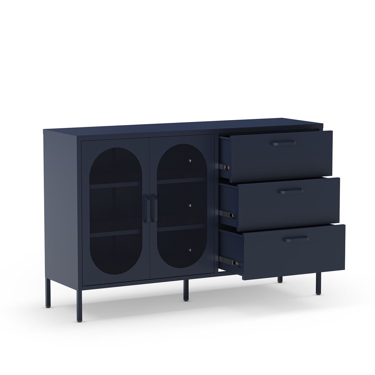Ready to upgrade your space? Our sideboard is the perfect addition to your home! The color blue, a symbol of confidence and serenity, has the power to transform a space into a peaceful haven. Metal is not only a durable material but also a modern statement piece that transforms any space into a stylish haven. Quality is synonymous with furniture that combines impeccable aesthetics and maximum durability, designed to create unique spaces that reflect you and your home's style. Shop now!