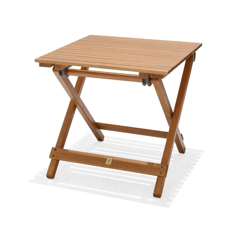Innovate in your outdoor spaces with this wonderful square and folding dining table that you can store in any corner if you don't have much space, such as on a small terrace. It is made of eucalyptus wood in a natural color and is perfect for two diners.