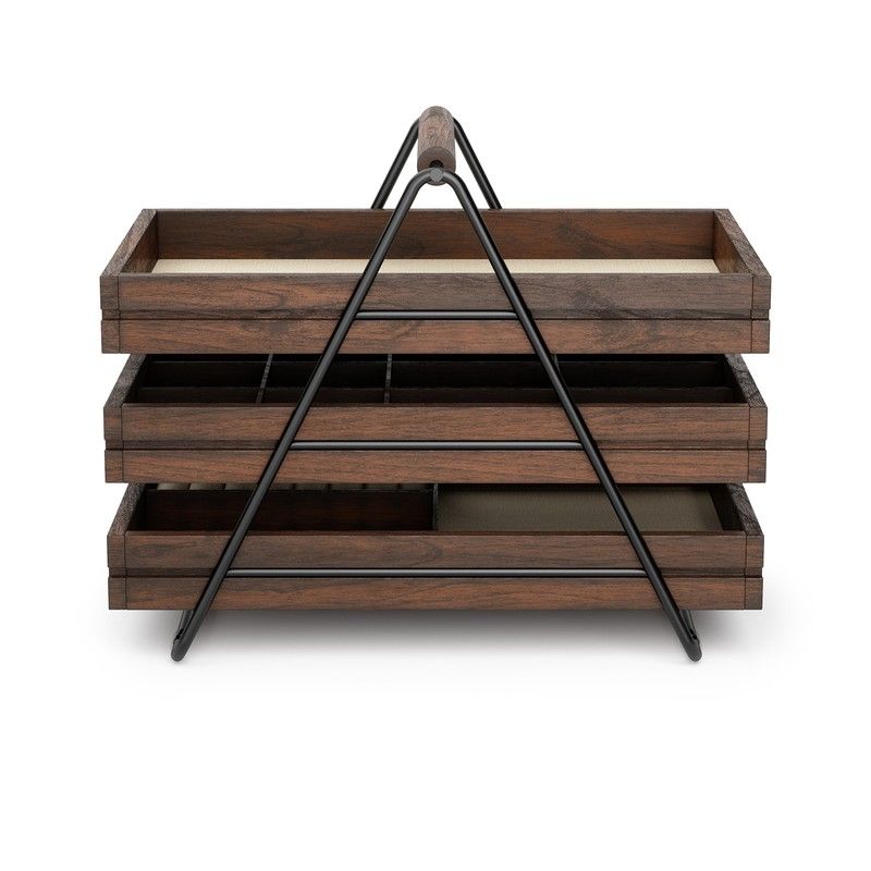 - Jewelry box with 3 sliding and removable trays.