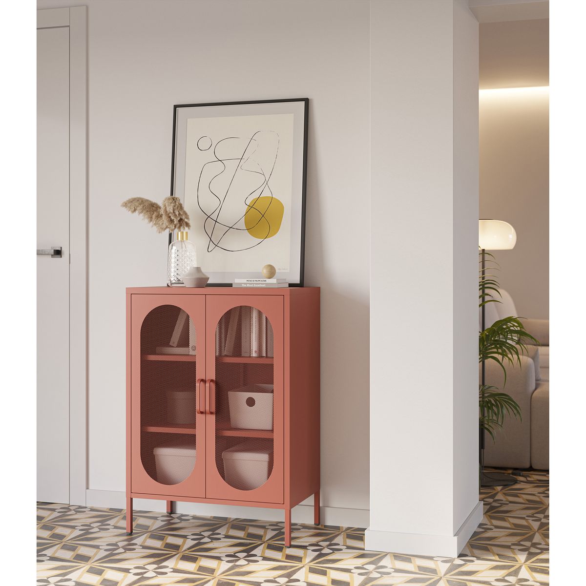 Designed to meet your storage needs in style, this essential piece of furniture combines form and function to create a stunning focal point in any room. Immerse yourself in the warmth and authenticity of the terracotta color to create a welcoming atmosphere in your home. With its strength and versatility, metal in decor offers functional solutions without sacrificing aesthetics. With Quality, each piece of furniture is a work of art that balances design, quality, and comfort, transforming your home into a place you'll always want to be. Don't miss this opportunity!