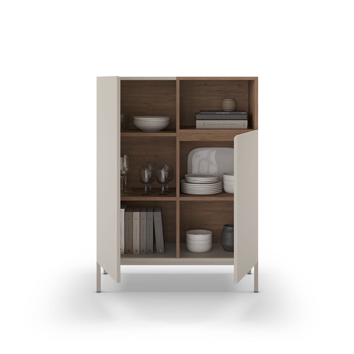 Let yourself be seduced by the timeless elegance of our tall sideboard. Get it now and make a difference in your home! With its soft, natural tones, beige in furniture decor creates a serene and welcoming atmosphere, where each piece becomes a haven of comfort and style. Furniture that unites tradition and modernity: sturdy metal structures that enhance the nobility and warmth of the wood. Experience a home full of style and quality. With Quality, your furniture will be the envy of all. Yes, I want a Chic home!