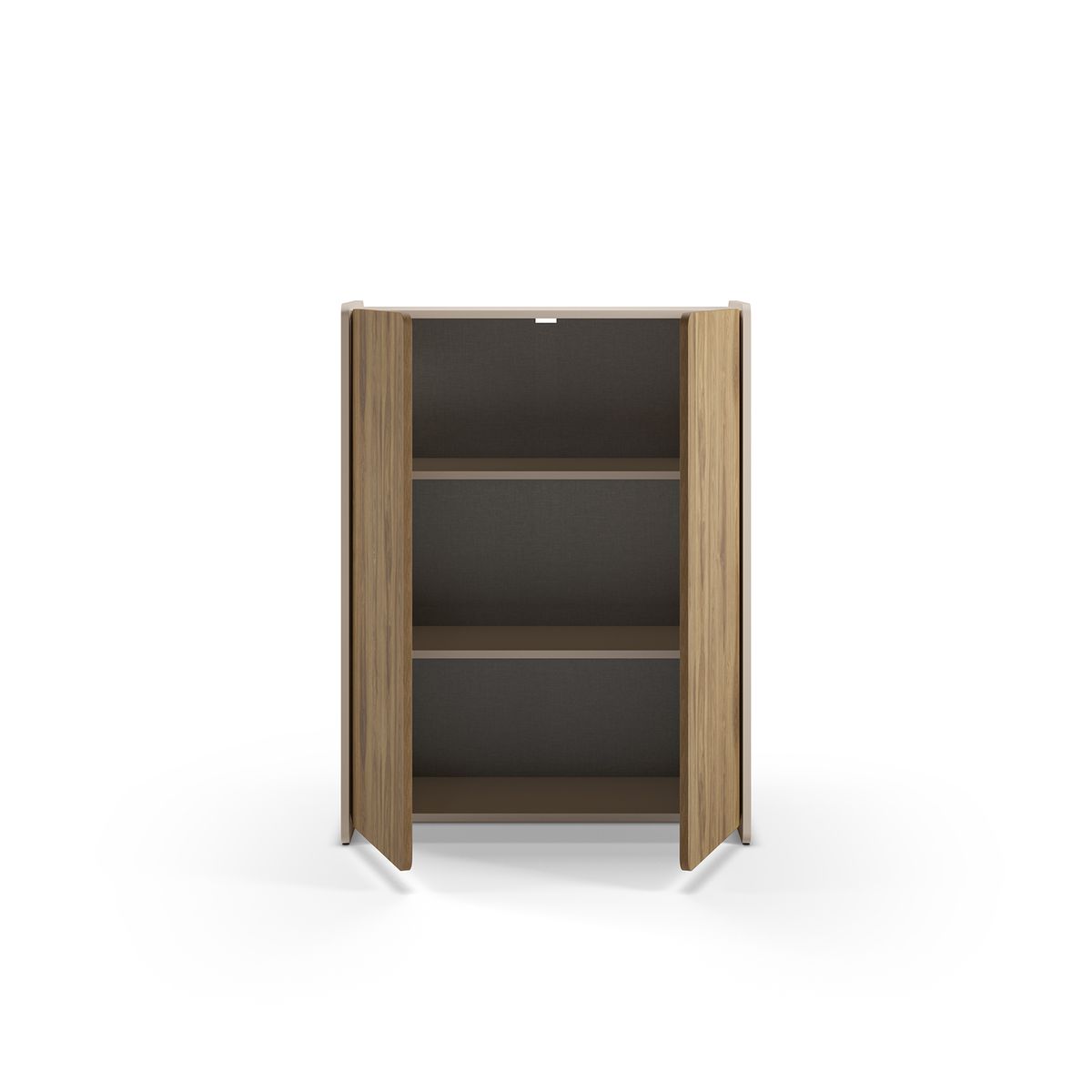 Tall wooden sideboard in oak and cream, 90 x 40 x 125 cm | Boucleon