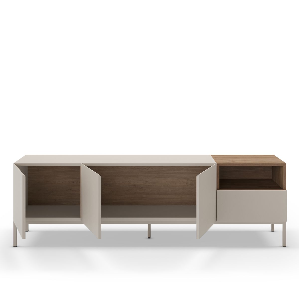TV stand in wood and metal, cream and oak color, 180 x 42 x 55 cm | Cailin