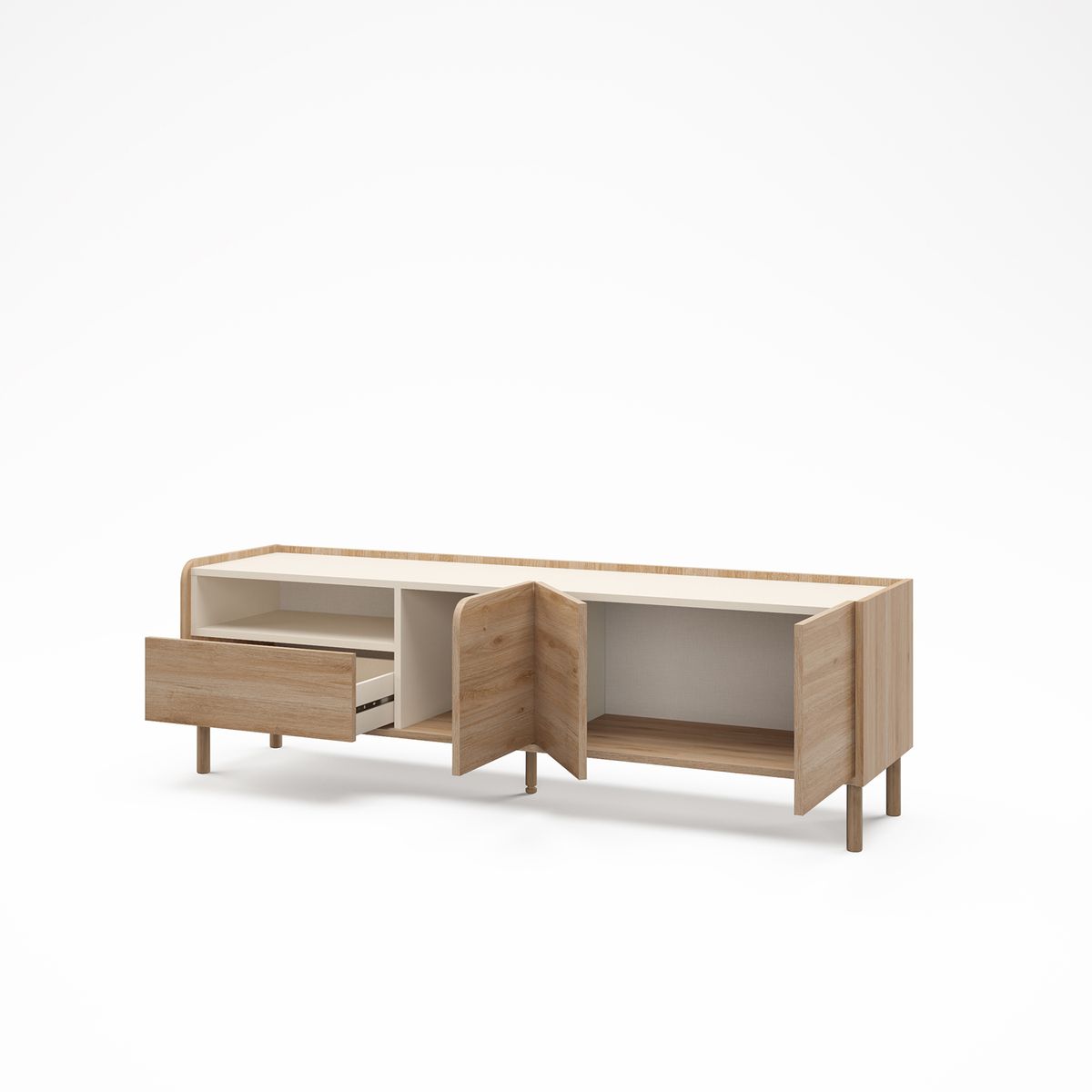 Wood and metal TV unit in oak and mink color, 180 x 44 x 55.5 cm | Monza