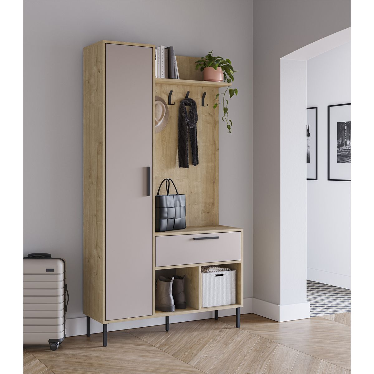 Design, organization, and beauty all in one place. An ideal entryway to maintain order and make the best first impression of your home. Transform your space into a haven of serenity with the oak finish, which brings freshness and brightness to any room. The blend of wood and metal transforms the everyday into the extraordinary, creating a balance between strength and delicacy. Quality means more than furniture; it means experiences. We create spaces where quality, design, and durability come together in perfect harmony. At a price… that I won't even hesitate to try!