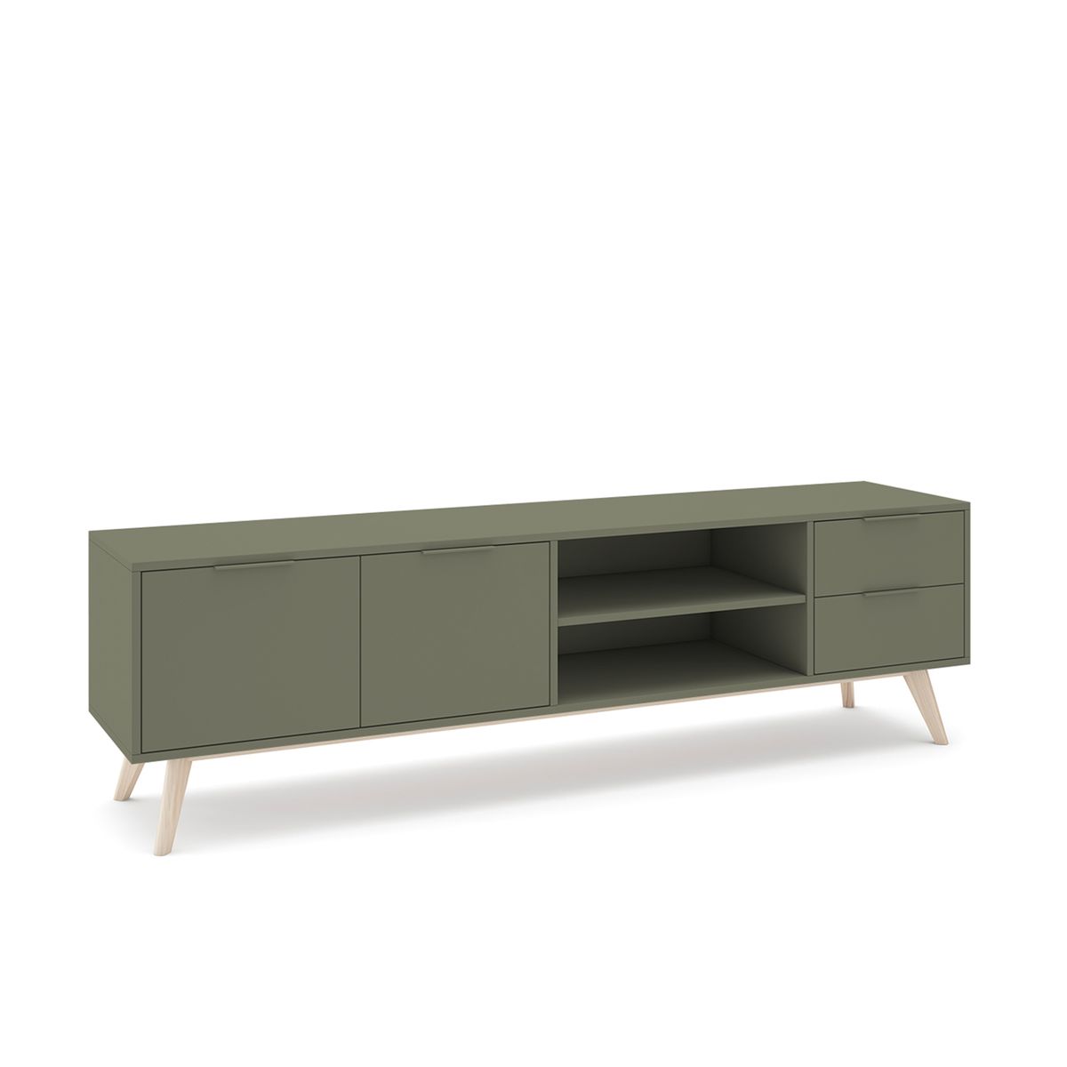 Wooden and metal TV stand in green, 180 x 40 x 53 cm | Campus