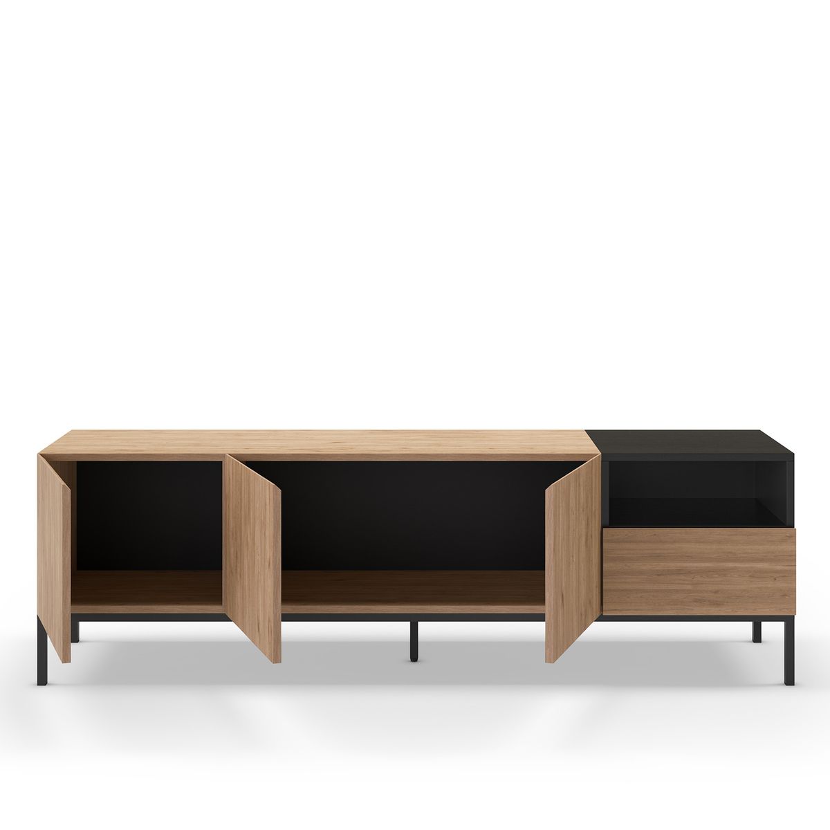 Wooden and metal TV stand in oak and black, 180 x 42 x 55 cm | Cailin