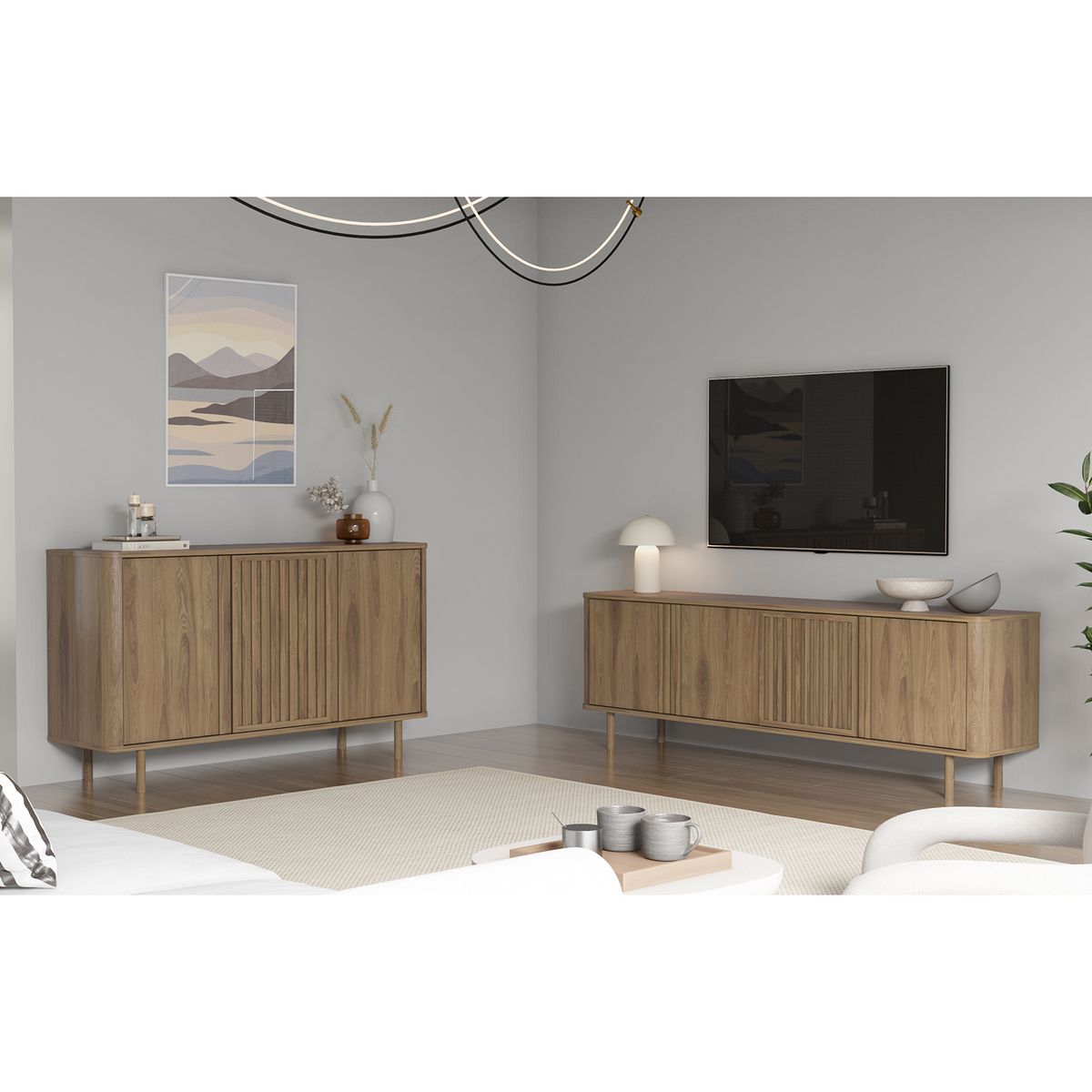 Wooden TV stand in oak color, 180 x 35 x 60.5 cm | Salma
